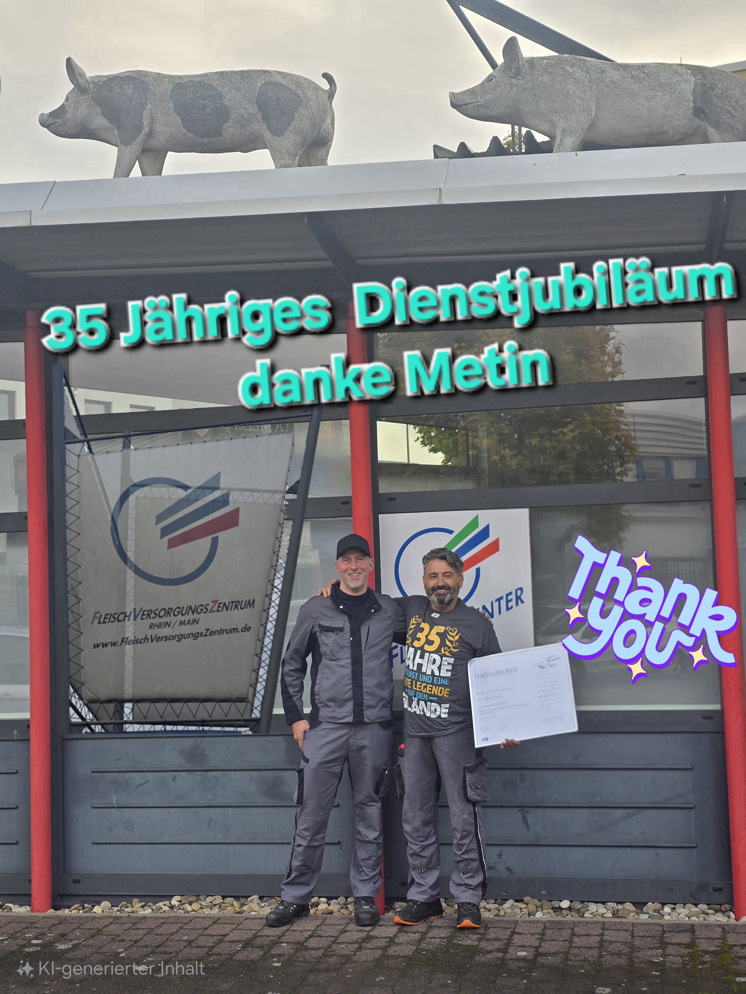 Unser Angestellter Herr Metin Özyigit ist seit 01.06.1990 beim Fleischversorgungszentrum angestellt. Er ist quasi der Mitarbeiter der ersten Stunde. Die FVZ wurde 1989 gegründet noch im Schlachthof in Sachsenhausen. 1996 wurde das Fleischversorgungszentrum in Fechenheim eröffnet und Herr Özyigit ist bis zum heutigen Tag treu geblieben. Er ist sich für keine Arbeiten zu schade und hat sich in einigen Bereichen immer weiter gebildet. Gerade die Instandhaltung des Gebäudes ist nach ca. 30 Jahren sehr wichtig. Herr Ingo Freund (Geschäftsführer FVZ) gratulierte Herr Özyigit für die vielen Arbeitsjahre und hofft auf eine weiterhin sehr gute Zusammenarbeit.